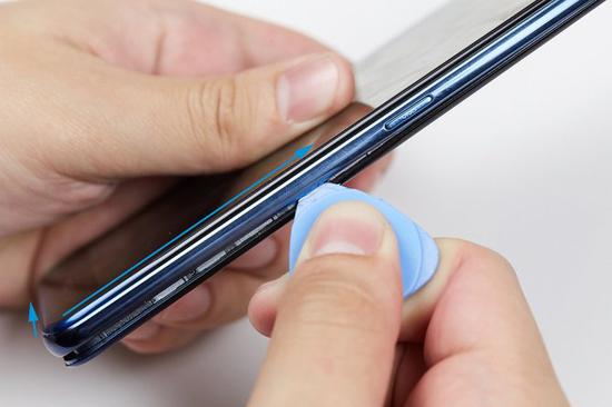 另外,拆解平台一定要干净,不能有异物和颗粒感。此外,拆解的时候力度不能太大,不然的话可能后盖和手机本体都会变形,甚至屏幕会碎裂。不要划到侧按键开关和卡托位置,前者容易刮坏,后者容易变形。
