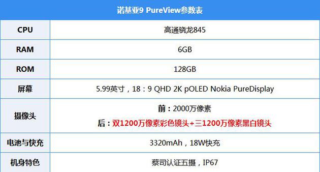 从参数表上,双1200万像素的彩色镜头加上三1200万像素黑白镜头组成的五摄系统,并且该系统经过了蔡司认证。其他方面,高通骁龙845+6GB内存的搭配,也让其性能配置上得到保证。