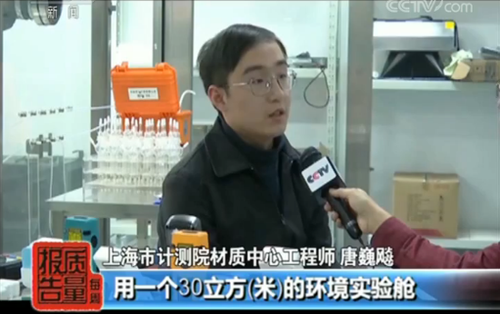 检测人员用专门的仪器将一定浓度的甲醛气体输入这个30立方米的实验舱中,需要连续在环境舱内检测20分钟,每间隔5分钟记录舱内各个甲醛检测仪的读数,以每台甲醛检测仪5次示值的平均值作为这台仪器的示值,最后按照公式计算示值误差。