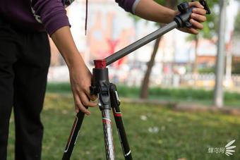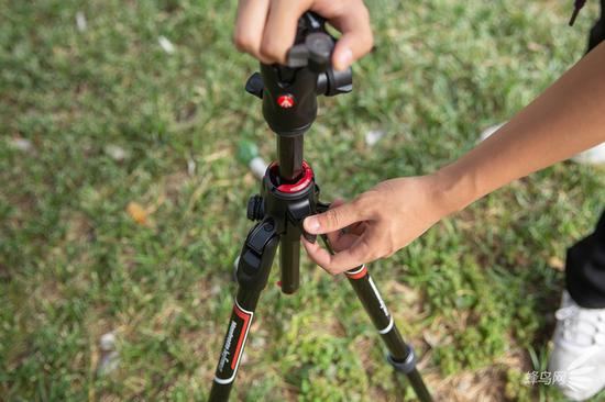 曼富图BefreeGTXPRO是曼富图首款内置90°中轴的旅行三脚架,而这也大大扩宽了三脚架的使用场景。首先,将旋钮拧松,按压中轴底端按钮,然后向上拔出中轴直到红色外壳跳出就能轻松实现中轴横置,在调节好中轴的伸展长度后重新将旋钮拧紧即可。