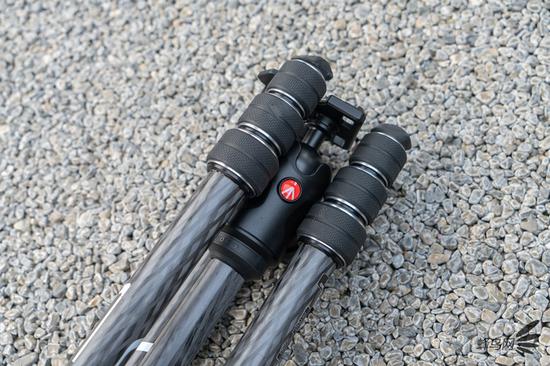 BefreeGTXPRO碳纤维版延续了曼富图三脚架一贯的设计风格,主体采用黑红配色,显得沉稳低调,碳纤维材质脚管和中轴的独特纹理也彰显了这款三脚架高端的定位。