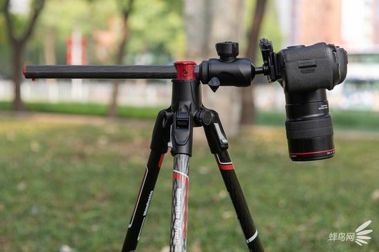 在横置中轴后,通过设置脚管的角度可实现低角度俯拍或微距拍摄。利用496球形云台调节相机角度后,仰拍也完全不在话下。
