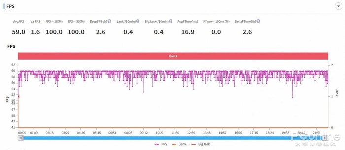 从游戏实测中也能看出,即使游戏特效和画质全设置成高,vivoZ6都不会出现明显掉帧的情况,FPS整体表现十分稳定,平均帧率最终维持在59帧。